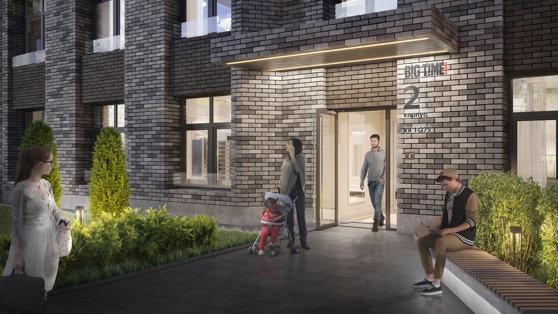 BigTime — комплекс бизнес-класса в 10 минутах от метро «Хорошево». В приватном внутреннем дворе на крыше стилобата обустроены уютные зоны отдыха. На территории открыты магазины, пекарня, аптека. В стилобатной части 3-го корпуса размещены коммерческие помещения с витринным остеклением.