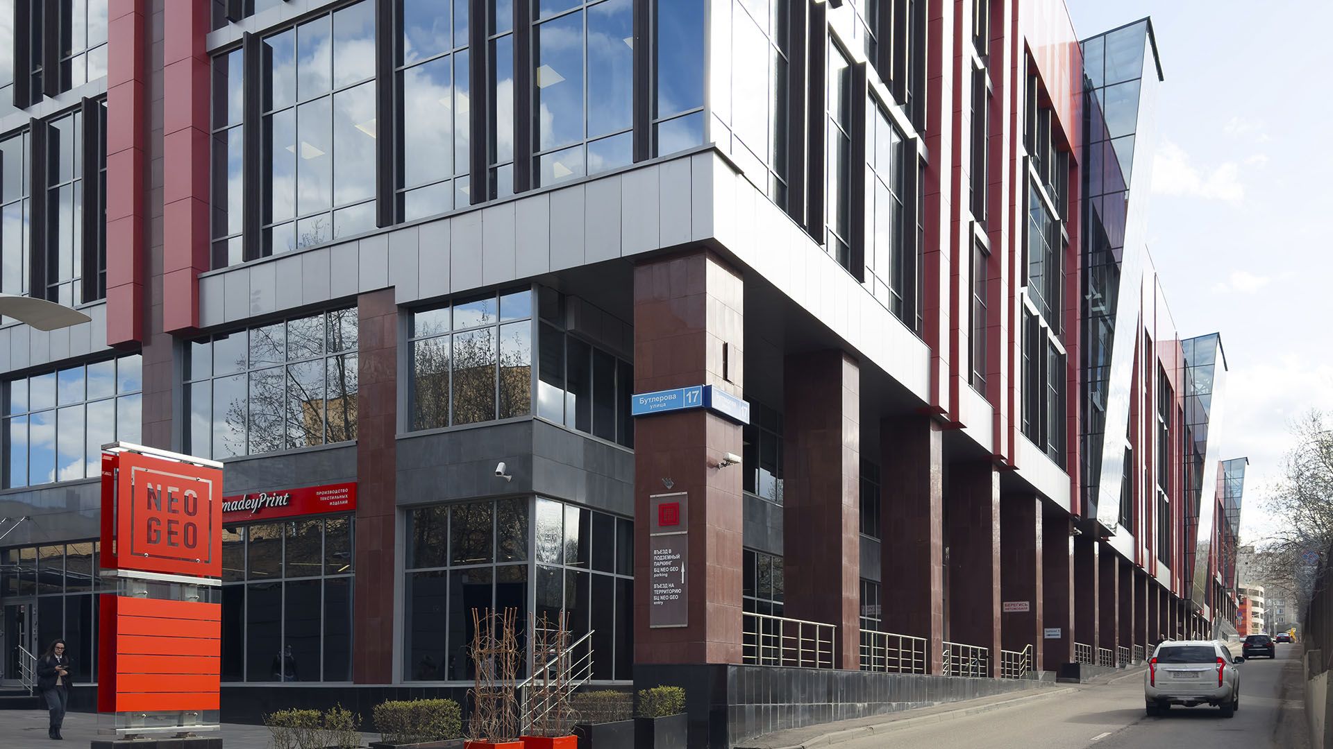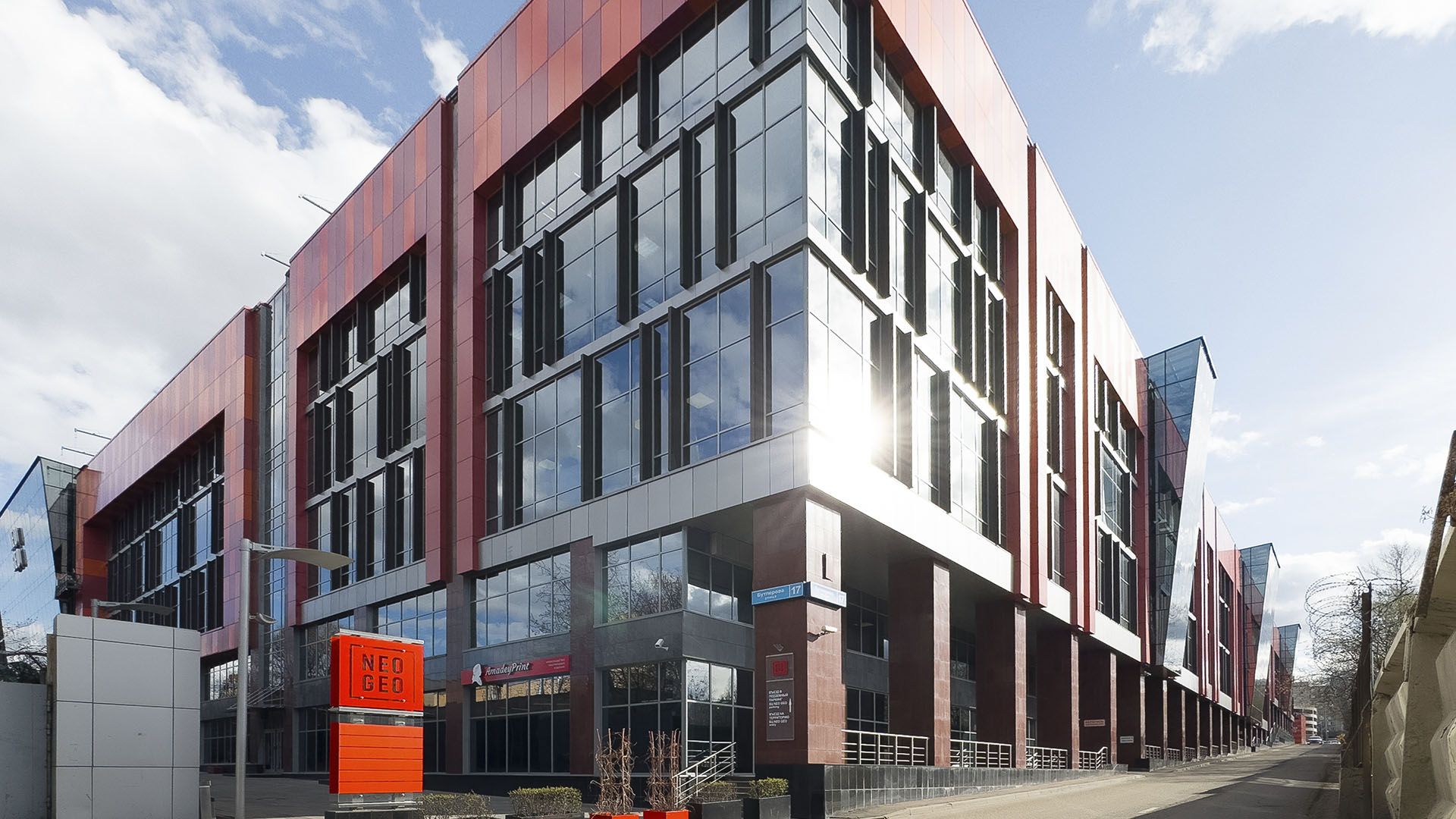 NeoGeo — бизнес-центр класса В+ включает в себя офисы с отдельным входом и ритейл с витринным остеклением. Торговая галерея протянулась на 120 метров. В окружении жилой район, ежедневный поток бизнес-центра до 12 000 человек.