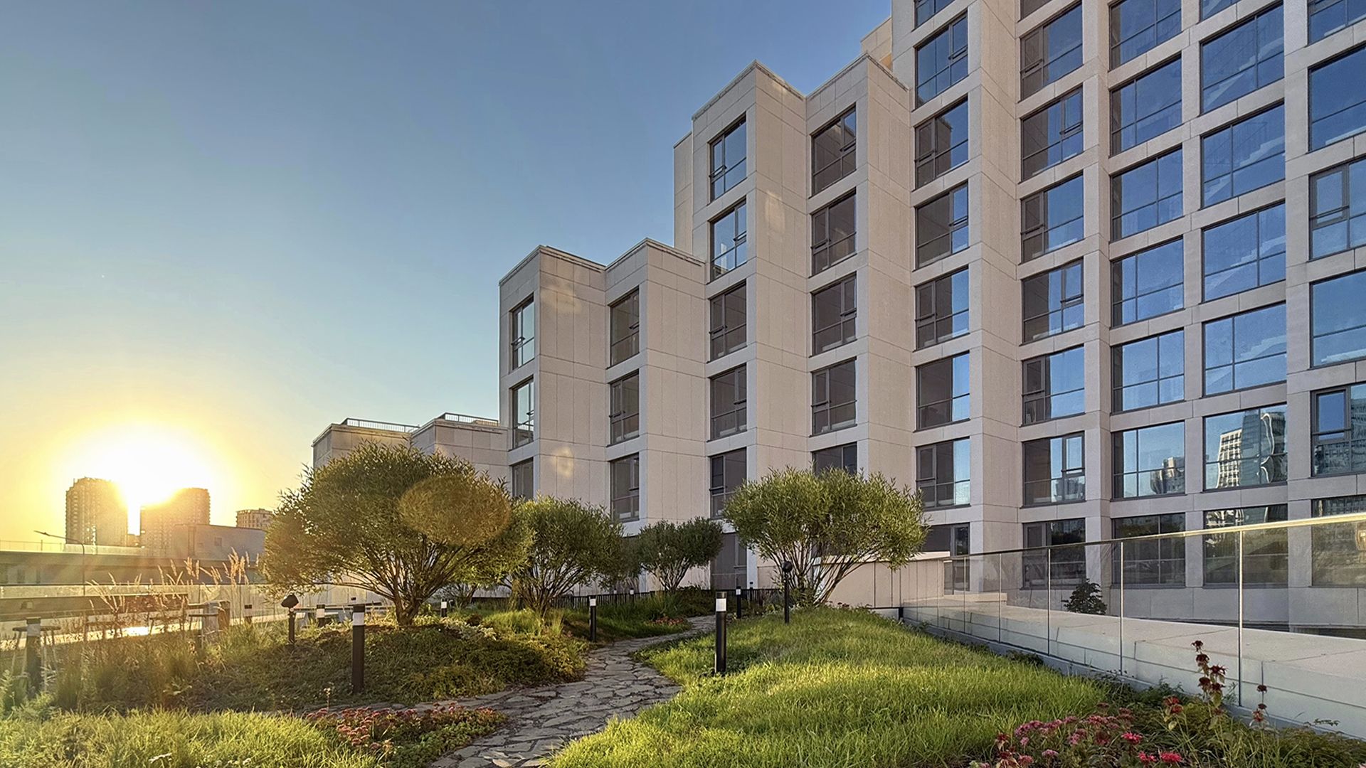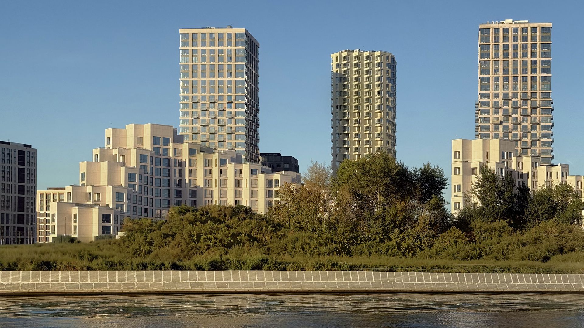 Квартал оборудован всем необходимым: от кафе и ресторанов до продовольственных магазинов, бутиков, детских и спортивных площадок, а также аллей для прогулок у реки. Вечерние прогулки вдоль набережной позволят забыть о городской суете и насладиться природой.