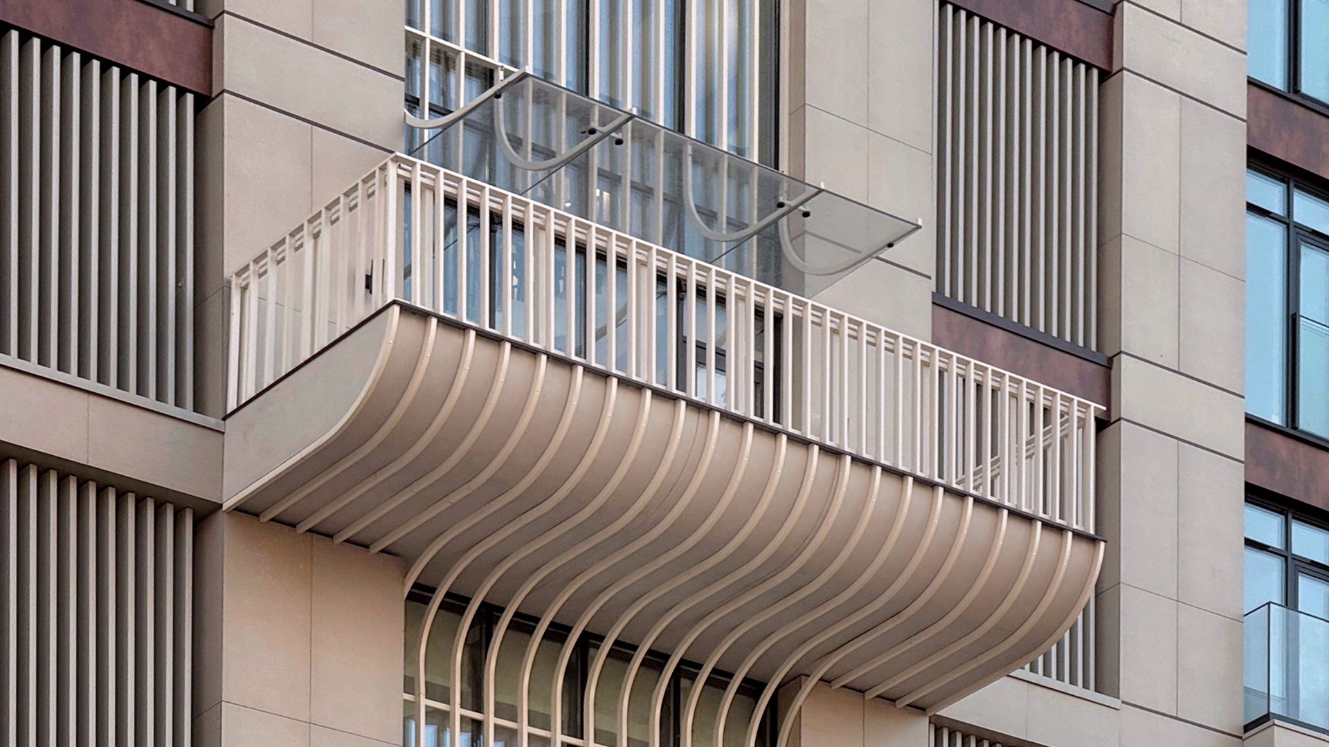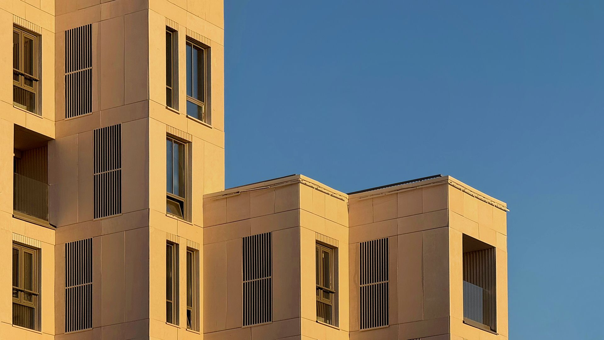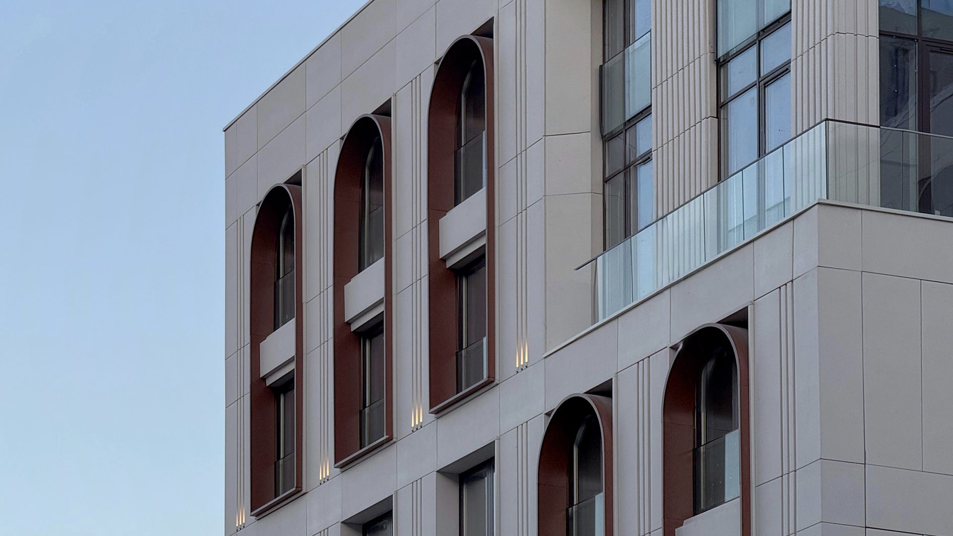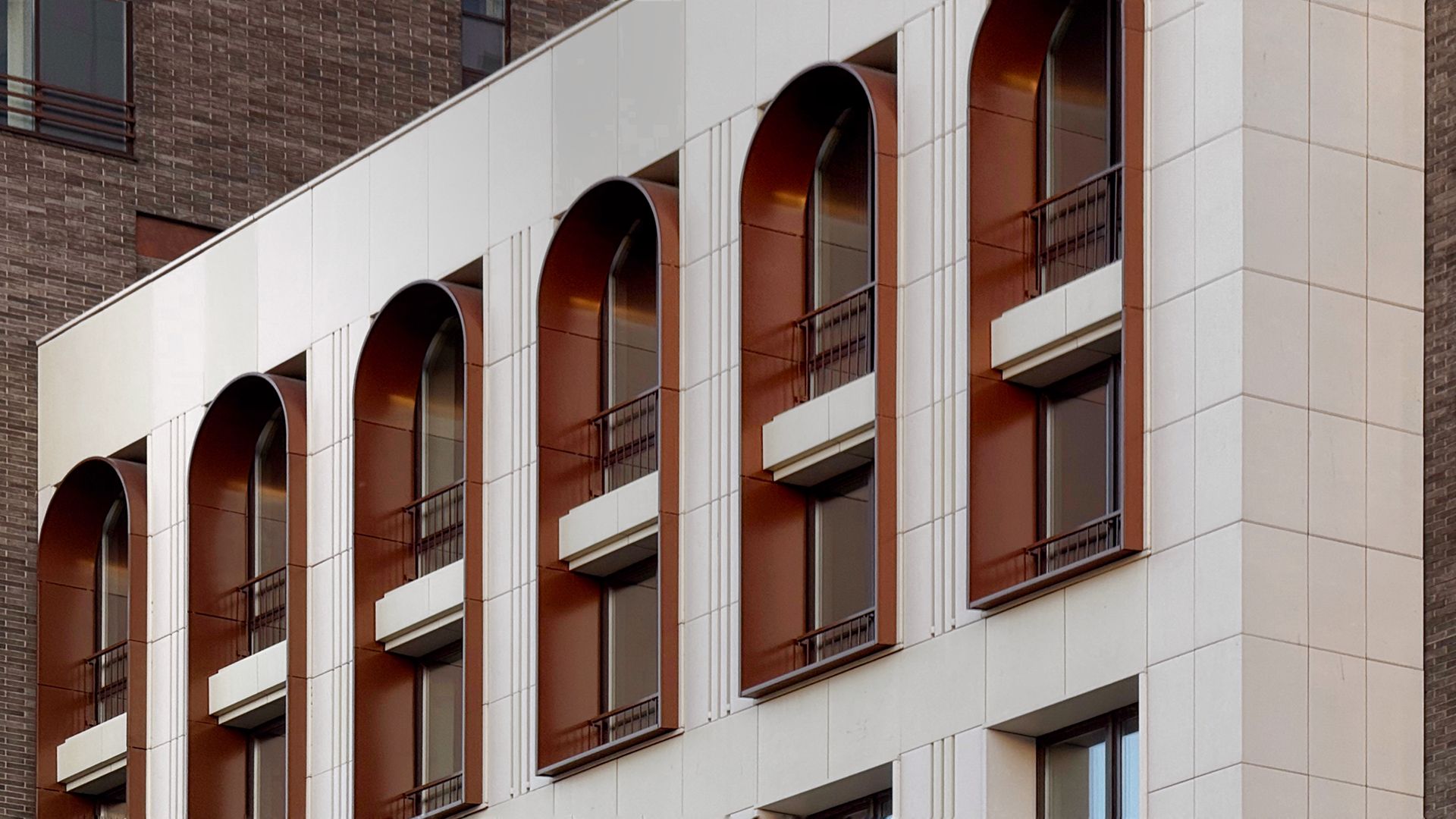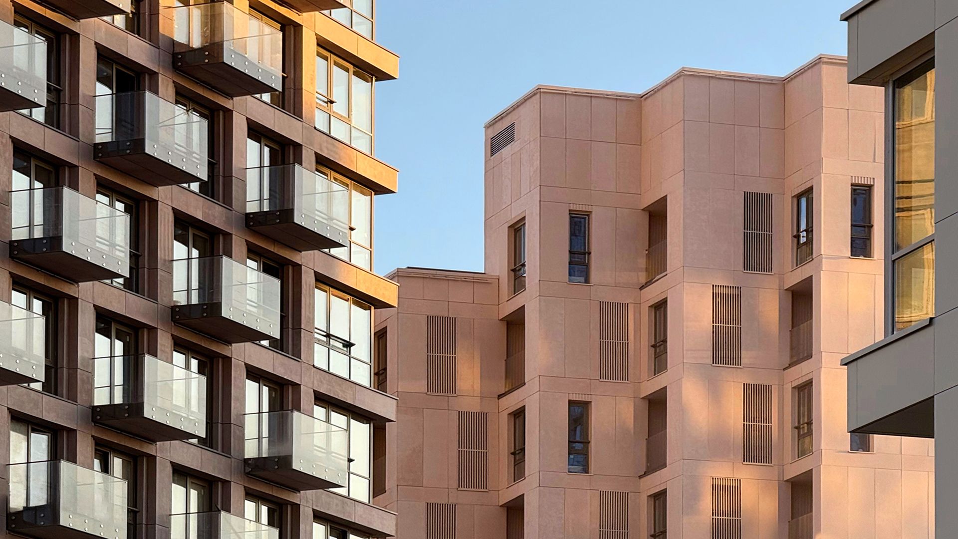 Проектировщики из Buromoskow создали здания в уникальном дизайне. Яркие и легкие фасады придают зданиям воздушность. Здание, состоящее из двух башен и соединённое стилобатом с центральным мостом, отличается медными оттенками, которые в лучах закатного солнца сияют, напоминая маяк. Здания от 3 до 11 этажей имеют форму угловой пирамиды, которая сужается к вершине. Помимо таунхаусов, здесь представлены квартиры с личными и общими террасами. А благодаря отсутствию внутренней отделки, будущие жители могут обустроить своё пространство по своему усмотрению.