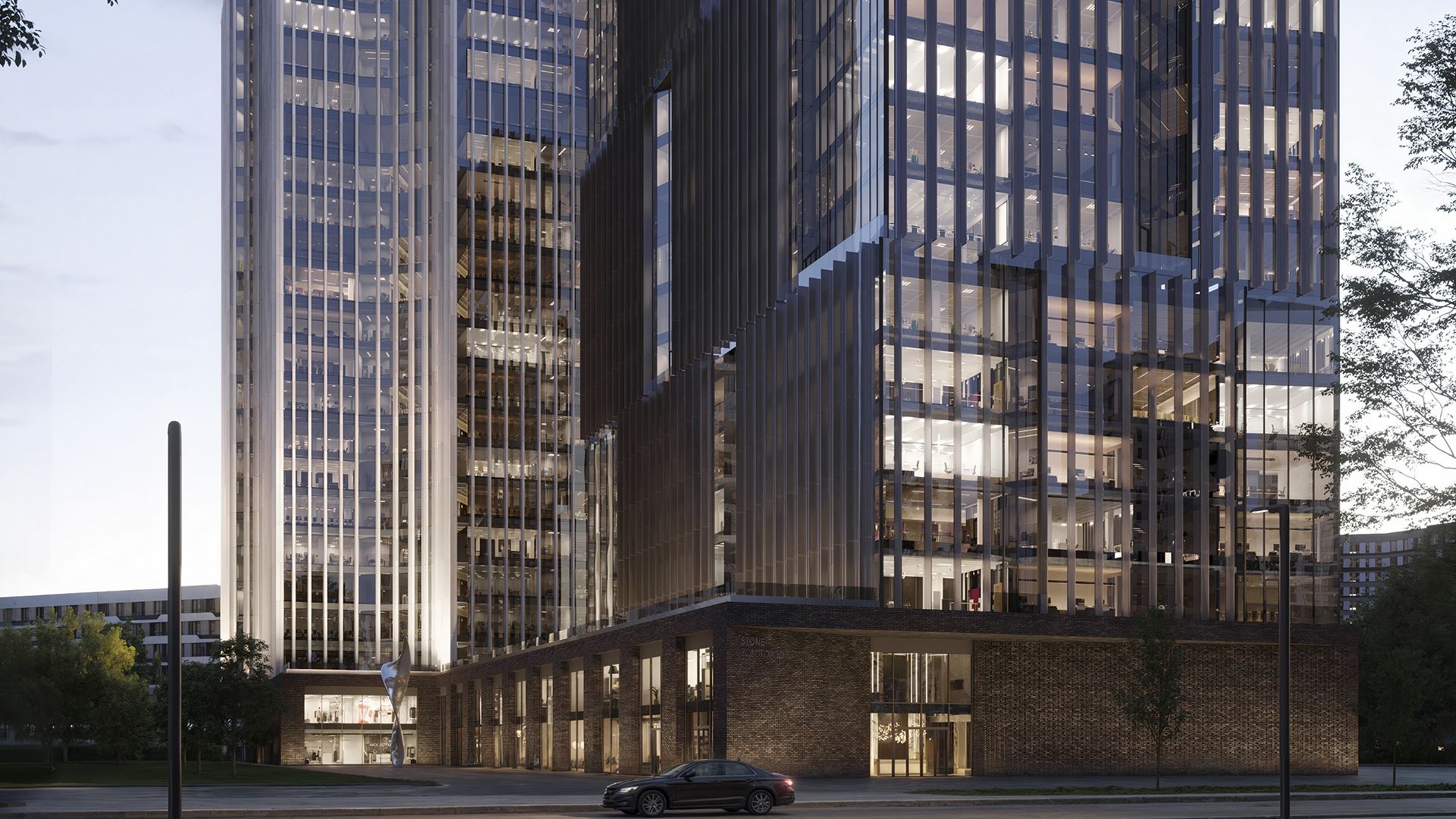 Stone Римская — офисный квартал класса А из двух башен высотой 18 и 23 этажа. Здесь доступны как классические прямоугольные офисы, так и пространства с нестандартной геометрией и лоджиями. На первых этажах расположены кафе, рестораны, конференц-зал и террасы. Предусмотрен подземный паркинг.